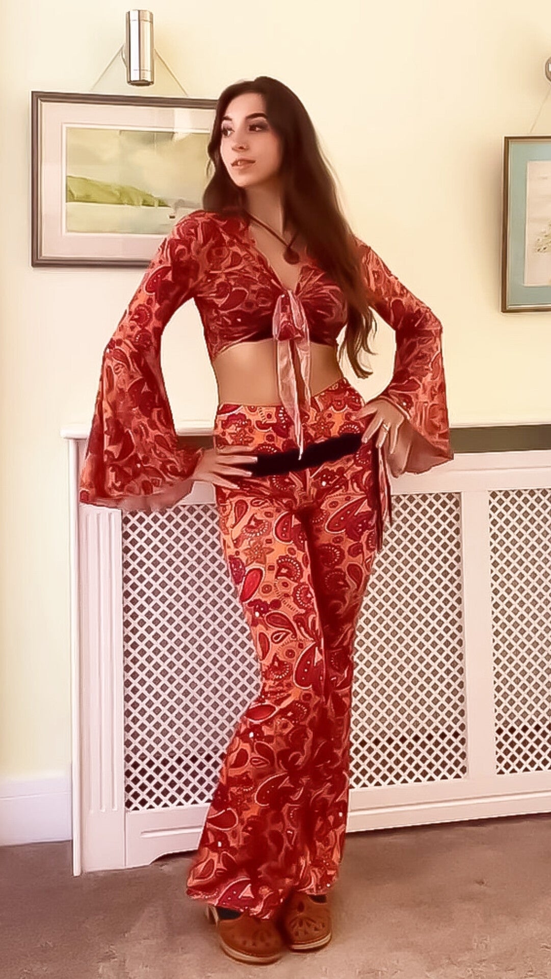 Be the grooviest version of yourself in our 'Cosmic Empire', far out, paisley flares! Fit for the grooviest of seventies queens!