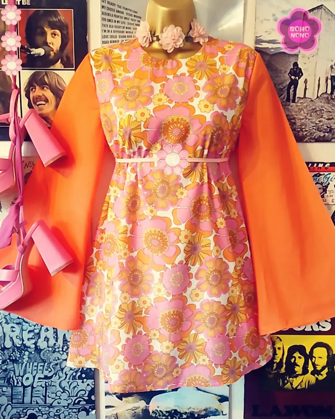 How much do we love flowers and orange combined?! Another classic Boho dress and such a colourful, vintage style beauty. This is definitely one for all you retro girlies that love frolicking around the fields and gardens in Summer or phoning friends to meet and dance the night away in a nostalgic haze. This is a Boho must have! With new darting options for a more fitted or flowing look and now made from the most gorgeous velvet fabric, this beauty is sure to make you feel like the retro goddess you are!