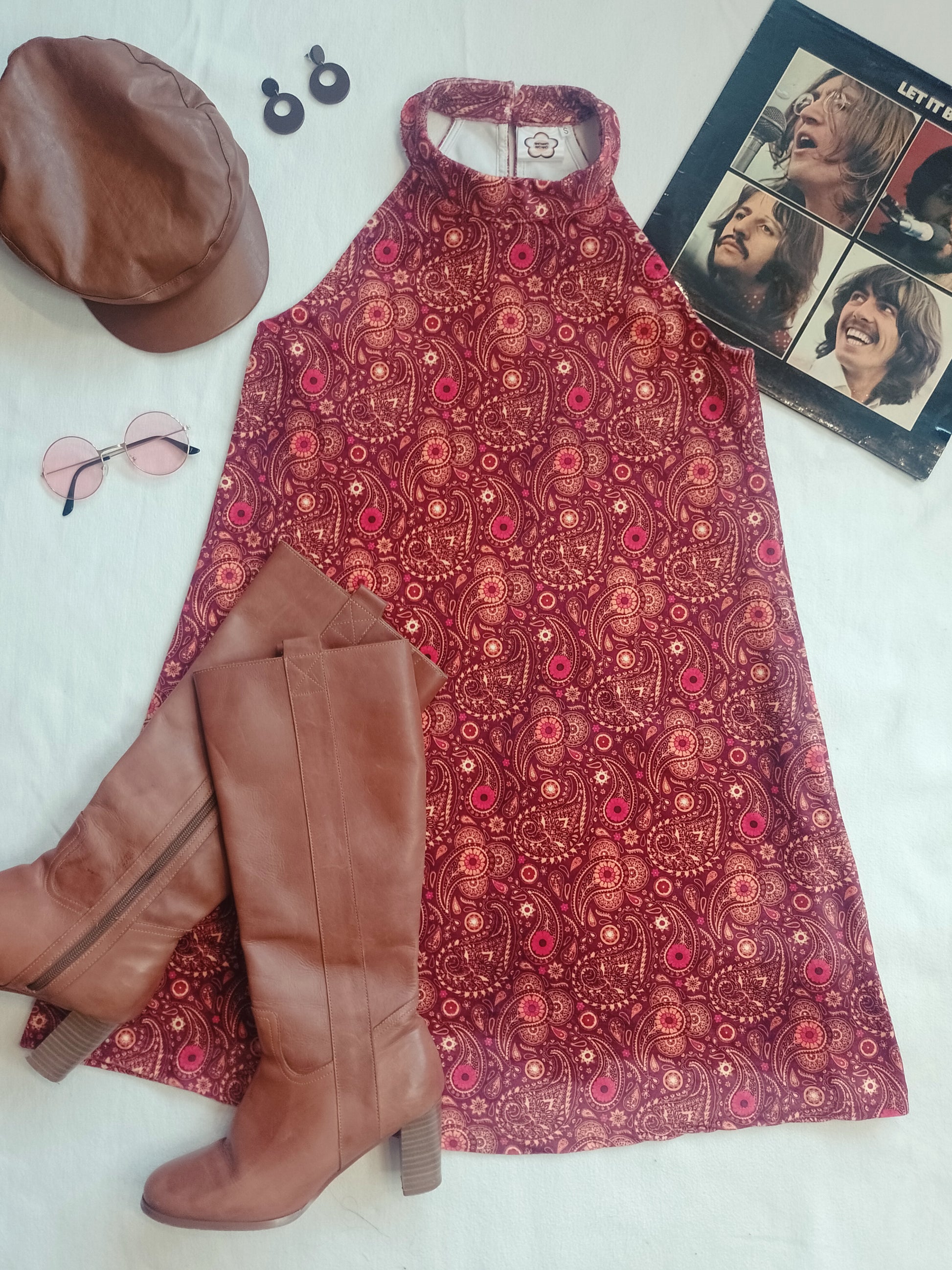Our 'Norwegian Wood' halter neck mini adorns the most lush paisley pattern, rich and warm in tones. Layered up or down for all seasons and with it's floaty nature, be sure to be the grooviest gal at the party with this vintage inspired beauty.