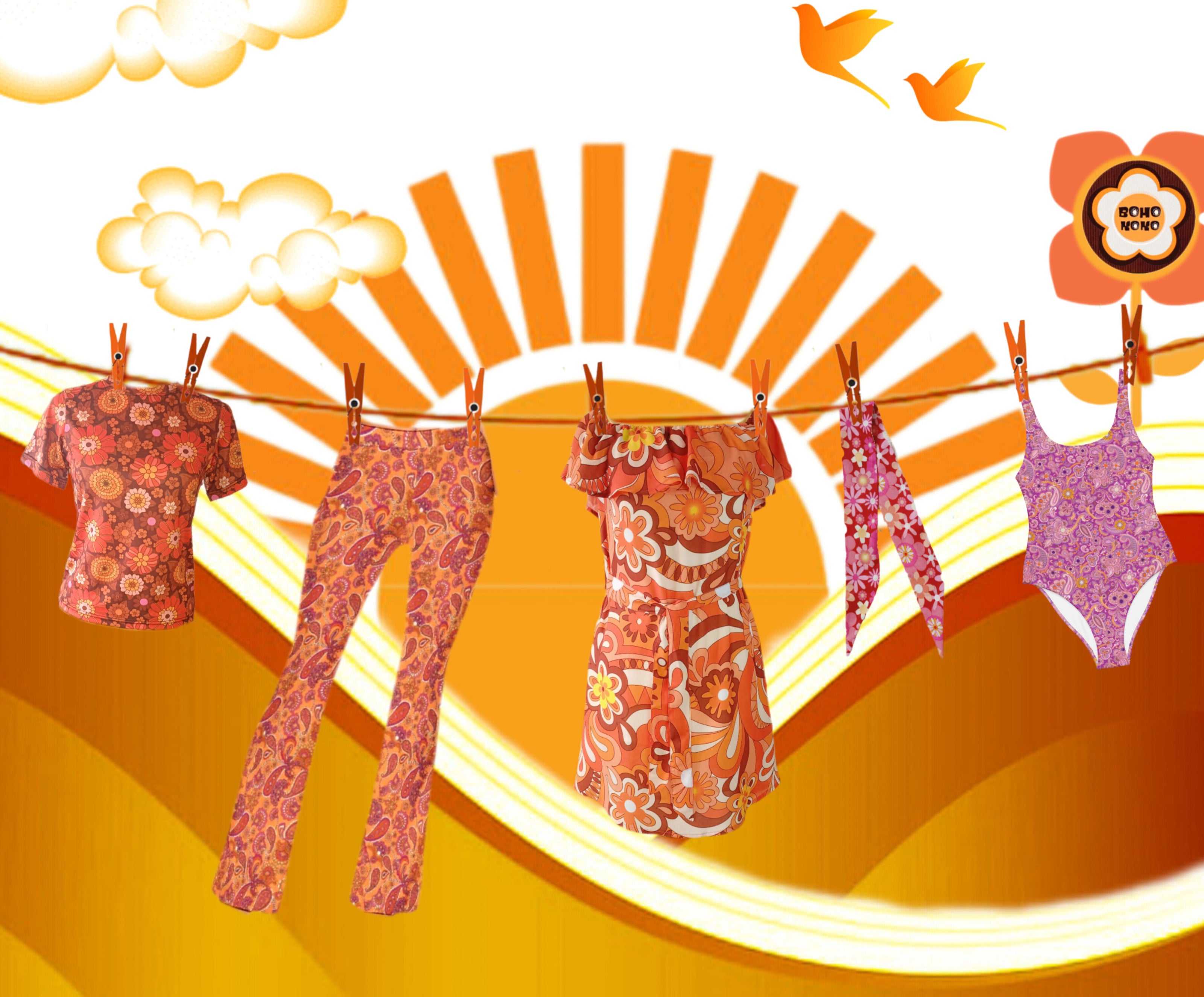 ExploreTaking inspiration from our love of sixties and seventies fashion, the Mod Movement, Mary Quant, Pucci and Celia Birtwell to name just a few, we've created the most hip Summer wear and all year round garms! Hand made to order in the UK, especially for you. Shop our exclusive dresses, tees, scarves, swimwear and flares now to join the groovy, Boho Babe movement...